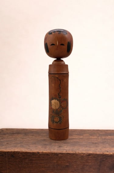 Kokeshi dolls originated in the Tōhoku region of northern Japan, where they were traditionally made by woodworkers as toys or souvenirs for visitors to hot spring resorts. Early examples were simple in form, with minimal decoration and a strong focus on craftsmanship.
