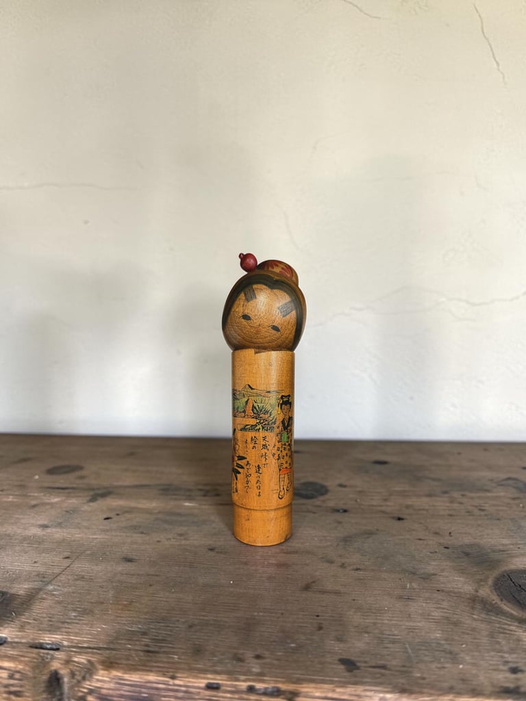During the Shōwa period, kokeshi production expanded beyond regional craft traditions to include souvenir pieces tied to specific locations. These often featured famous sites, literary references, or scenic views, allowing visitors to bring home a symbolic memory of their journey.