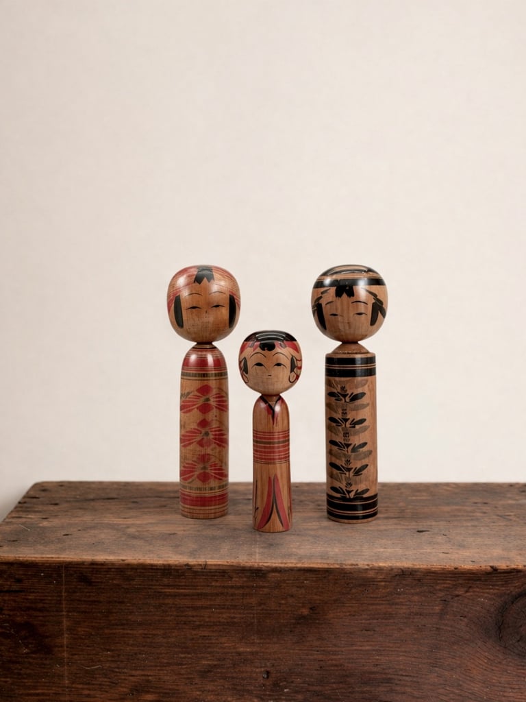 Kokeshi dolls originated in the Tōhoku region of northern Japan and were traditionally associated with local craftsmanship and onsen culture. Over time, particularly during the Shōwa period, their production expanded, and artisans began exploring more diverse forms and finishes.