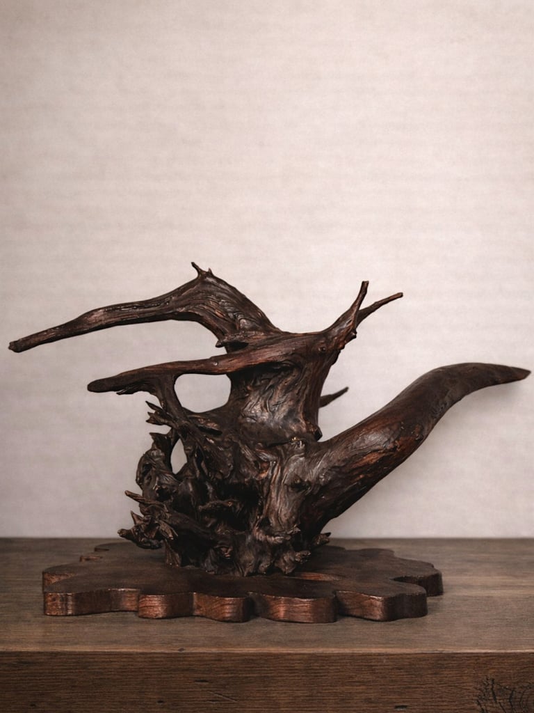 IIn Japanese interiors, naturally shaped wood has long been appreciated for its expressive and sculptural qualities. Particularly during the Shōwa period, large root wood compositions became popular as decorative elements, valued for their ability to bring a sense of nature indoors.